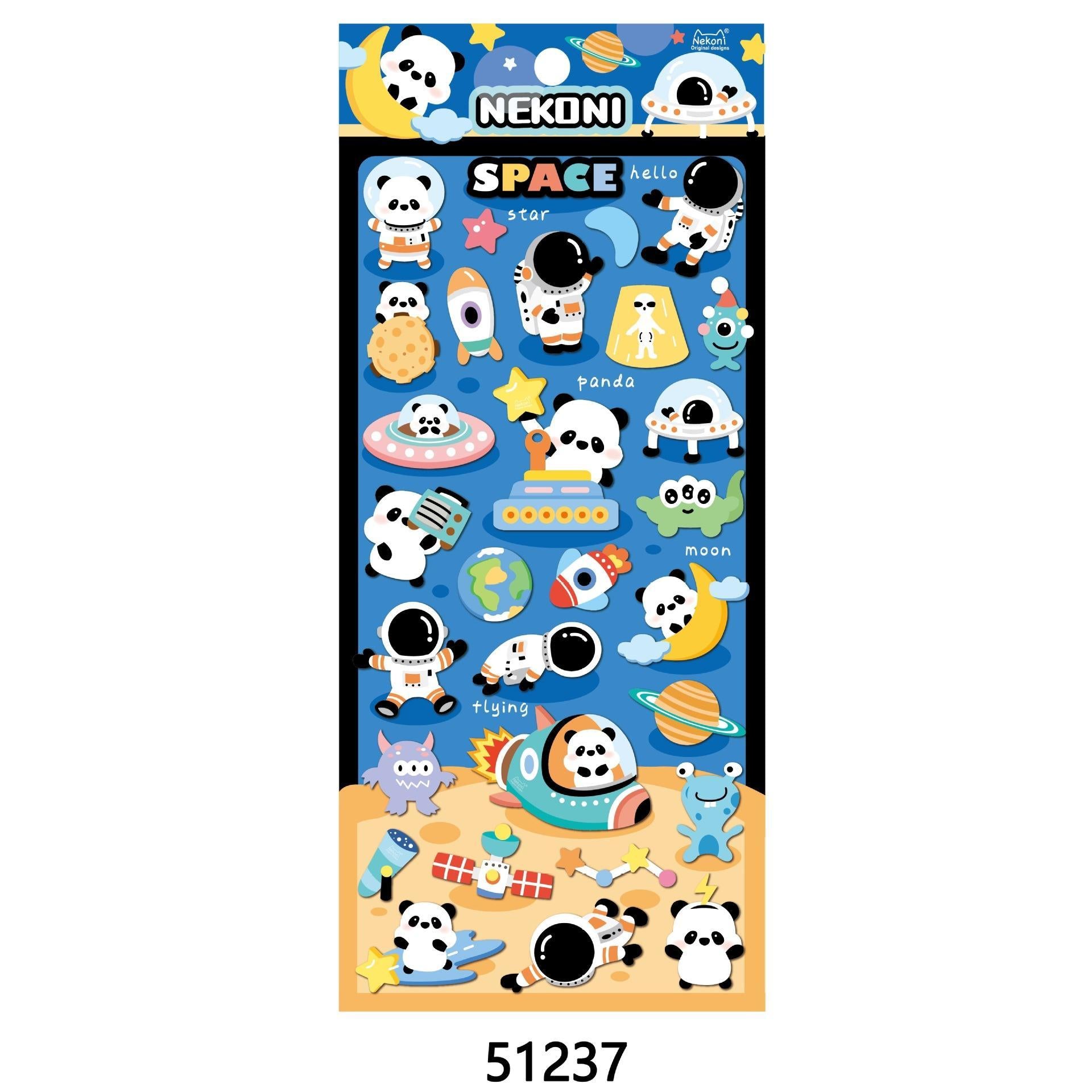【N10】キラキララメ入り ふんわりボア 太空パンダ・クマ・キツネ・コアラ 立体デコレーションステッカー